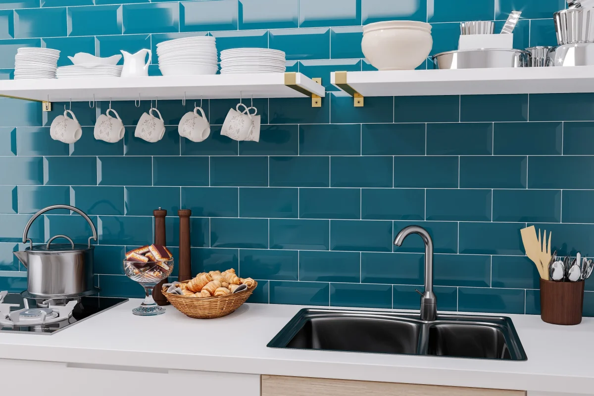 Faianță baie / bucătărie Metrotiles, 10 x 20 cm, albastru deschis, lucios